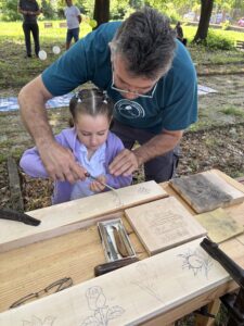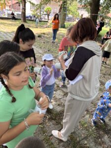 Под сянката на зелените дървета и с пъстро украсени кътове, децата се включиха в творчески занимания, спортни игри и образователни работилници. Специален акцент бе участието в художествено дърворезбарство, което предизвика истински интерес у най-малките.